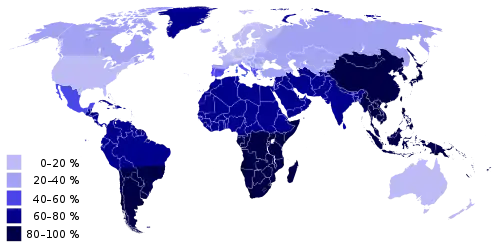 - 30−55 %, 90 % и > 90 % для метисов из Перу[21][22].