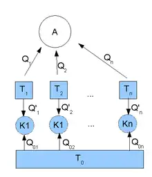 Для получения неравенства Клаузиуса в общем виде можно рассмотреть систему A, работающую с n резервуарами температур и получающую от них тепло . Вводится дополнительный Резервуар температуры . Между ним и остальными резервуарами запускаются машины Карно — по одной на каждый.