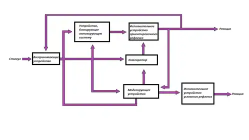 Модель нервного стимула участвует и в выработке условного рефлекса, связываясь с исполнительным устройством условного рефлекса[5].