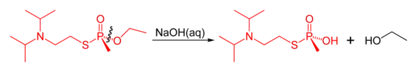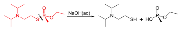 Утилизация НПОВ ведётся преимущественно методом щелочного гидролиза с применением гидроксида натрия, при этом разрушается либо связь атомов фосфора и серы, либо фосфора и кислорода. Например: