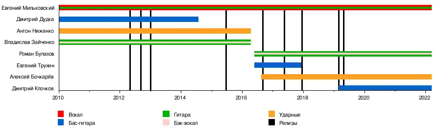 - Евгений Мильковский (род. 19 мая 1991 г.) — вокал, гитара
