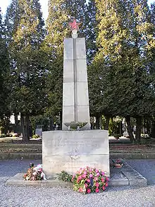 Могилы советским солдатам находятся в центре кладбища. Вокруг обелиска с его передней и боковых сторон расположены могилы офицерского состава. Позади обелиска небольшая возвышенность с табличкой чеш. Hromadný hrob 1436 vojáků R.A. z toho 9 žen, что в переводе означает: «Массовое захоронение 1436 солдат Красной армии, включая 9 женщин.»