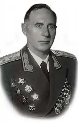 - три ордена Ленина (19.12.1941 — за бои под Диканькой и Харьковом[8][12], 1950, 12.12.1957 — за руководство боевым расчётом космодрома при запуске первого в мире искусственного спутника Земли[5][8])