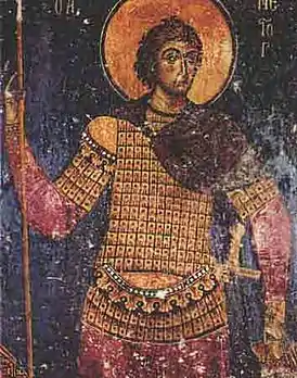 ![]() Мученик Нестор. Фреска XII в., Церковь св. Николая, Кастория, Северная Македония. | |