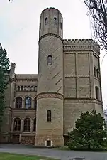 К юго-западу от парка находятся здания бывших конюшен. Как и замок, прежний манеж для верховой езды построен из жёлтого клинкерного кирпича. Во времена ГДР здесь была станция для заправки газовых баллонов.