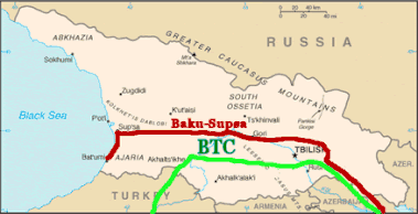 Одной из причин образования союза постсоветских государств ГУАМ — Грузии, Украины, Азербайджана и Молдовы — была попытка обойти российскую монополию на транспортировку каспийской нефти. 8 марта 1996 Президент Азербайджана Гейдар Алиев и Президент Грузии Эдуард Шеварднадзе в Тбилиси пришли к соглашению о прокладке нефтепровода «Баку — Супса». В трехстороннем договоре, подписанном компаниями Amoco, SOCAR и правительством Грузии, предусматривалась транспортировка азербайджанской нефти, полученной с месторождений «Азери», «Чираг» и «Гюнешли»[5].