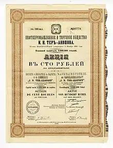- Путеводитель по фондам РГИА/ФОНДЫ ОБЩЕСТВЕННЫХ И ЧАСТНЫХ УЧРЕЖДЕНИЙ И ОРГАНИЗАЦИЙ/Фонды акционерных обществ и товариществ/Нефтяные|Номер фонда:1433 | НЕФТЕПРОМЫШЛЕННОЕ И ТОРГОВОЕ АКЦИОНЕРНОЕ ОБЩЕСТВО И.Н.ТЕР-АКОПОВА