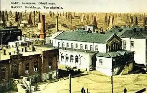 - «Бакинское нефтяное общество»[47]. Первая Российская акционерная компания в нефтяном секторе. Основана в 1874 году В.А. Кокоревым и П.И. Губониным[58] с первоначальным капиталом 2,0 млн руб. (к 1913 году составлял 7,785 млн руб.[47]). Чистая прибыль за 1913 год – 4,881 млн руб. Компании принадлежало: нефтяные промыслы в Балаханах, Сабунчах и Биби-Эйбате, морская пристань с резервуарами для хранения нефти, нефтеперегонный завод в Сураханах, 2 наливные станции[47]. Так же владело земельными участками в Кубанской области. В 1909-1911 гг. для совместного приобретения и разработки новых нефтеносных земель, совместно с «Бранобель» и другими нефтепромышленными предприятиями участвовало в создании Общества «Колхида» (доля составила 15%). К 1917 году стоимость всего имущества Общества превышала 19 млн руб., на объектах было занято более 3,5 тыс. рабочих[59].