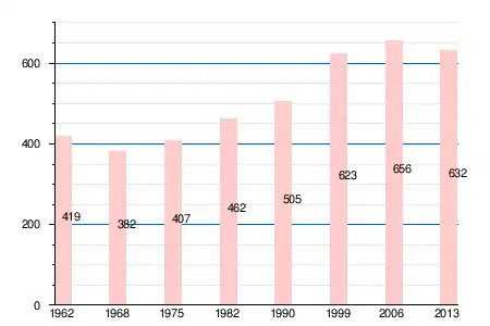 Население коммуны в 2011 году составляло 644 человека[6], в 2012 году — 634 человека[7], а в 2013-м — 632 человека[5].
