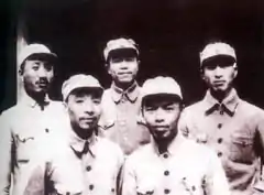 ![]() Не Фэнчжи (в центре) с товарищами по оружию во время войны с японскими захватчиками | |