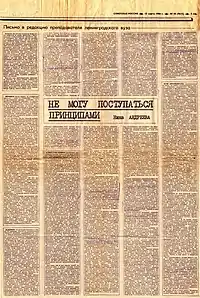 - Андреева Н. А. Не могу поступаться принципами // Советская Россия. — 1988. — 13 марта. — С. 3.