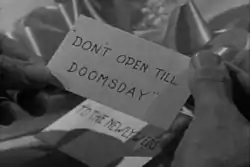 «Не открывать до Судного дня» (англ. The Outer Limits: Don't Open Till Doomsday) — телефильм, 17 серия 1 сезона телесериала «За гранью возможного» 1963—1965 годов. Режиссёр: Герд Освальд. В ролях — Мириам Хопкинс, Джон Хойт, Рассел Коллинз, Бак Тейлор, Нелли Бёрт.