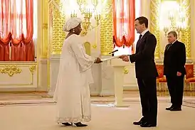 - Дмитрий Медведев принял верительные грамоты от одиннадцати новых послов иностранных государств. Комсомольская правда. Дата обращения: 9 декабря 2011.