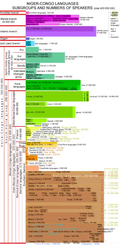 | 25 | Тив | 2240 | 1,35 | Нигерия (89,3 %), Камерун (10,7 %) |