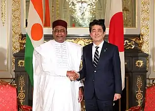 Президент Нигера Махамаду Иссуфу 3 раза посещал Японию. В первый раз посетил её в 2015 году и провел Саммит с премьер-министром Японии Синдзо Абэ на котором обсуждали вопросы по «Боко харам» и безопасности Сахель.[3]