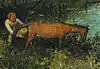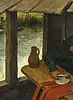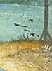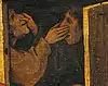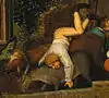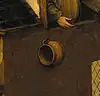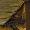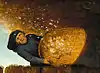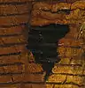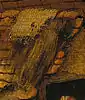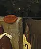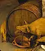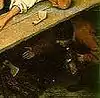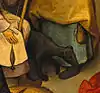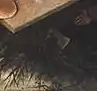 - Грязь на холсте в этом месте не позволяет увидеть изображение собаки.