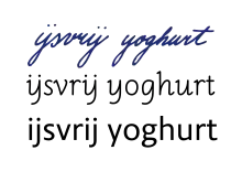 Интересно также, что во времена широкого использования пишущих машинок на нидерландских справа от L помещалась отдельная клавиша «ij». Примеры слов, набранных моноширинным шрифтом с использованием лигатуры IJ: