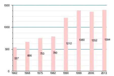 | 537 | 666 | 753 | 790 | 1212 | 1380 | 1352 | 1344 | 1328 | 1361 | 1394 |