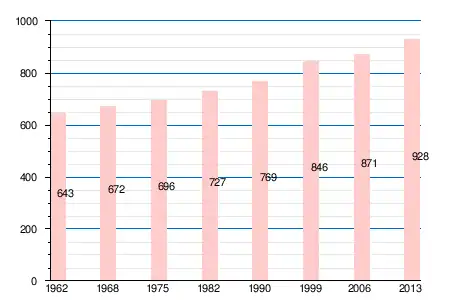 Население коммуны в 2011 году составляло 922 человека[6], в 2012 году — 923 человека[7], а в 2013-м — 928 человек[5].