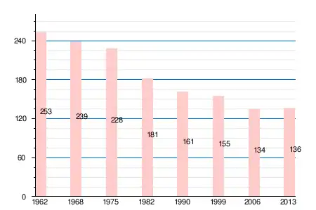 | 253 | 239 | 228 | 181 | 161 | 155 | 134 | 145 | 150 | 143 | 136 |
