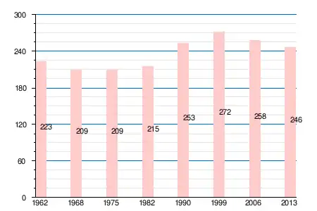 | 1962 | 1968 | 1975 | 1982 | 1990 | 1999 | 2006 | 2008 | 2011 | 2012 | 2013 |