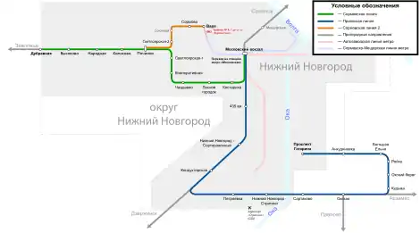 Приокская линия — состоит из 13 станций. Имеет 5 пересадочных узлов с городским и пригородным транспортом на Московском вокзале и станциях: «Нижний Новгород-Сортировочный», «Петряевка», «Окская» и «Проспект Гагарина». Выходит за пределы города и соединяет собой Канавинский, Ленинский, Автозаводский, Нижегородский (Зелёный город) и Приокский районы[5]. Также соединяет город и пригород, из-за чего цена на проезд может изменяться, в зависимости от тарифной зоны.