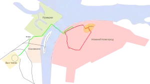 - На улице Чкалова вблизи остановки «Центральный рынок»; линия от станции Нижний Новгород-Московский на завод имени Воробьёва;