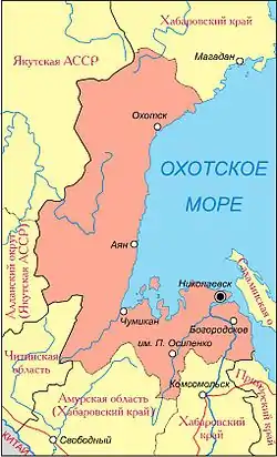 В период с 1945 по 1956 годы в области возникло ещё 4 посёлка городского типа — Агние-Афанасьевский, Лазарев, Маго и Охотск.