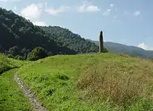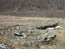 ![]() Руины городища в панораме Архызского заповедника. | |
