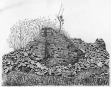 Фундамент одноапсидной двухчастной церкви, расположенной на левом берегу ручья Подорванного был исследован В. А. Кузнецовым в 1861 году. Здание, размером 11,3 х 5,3 метра, состояло из двух помещений: неотделённого от алатря наоса и узкого западного притвора. Оригинальной его особенностью являлись два массивных контрфорса, пристроенных к северной и южной стенам в месте их соединения с апсидой. При раскопках в церкви найдены обломки керамики, железные гвозди, фрагменты железных крестов, обломок стеклянного браслета. Наиболее важная находка — обломки двух каменных плит, входивших в кладку стен[33]. На одной из них обнаружена часть общеупотребительной мусульманской формулы: «Нет бога кроме Аллаха, Мухаммед посланник Аллаха», на другой хорошо сохранилась дата — 436 год хиджры, что соответствует 1044 году нашей эры[35][36]. По мнению В. А. Кузнецова, тот факт, что два обломка мусульманских надгробий были использованы для строительства церкви, говорит о острой конфессиональной борьбе между мусульманами и христианами, происходившей здесь в XI веке, и о возможной победе христианства. На основании даты, сохранившейся на второй плите, постройка этой церкви датируется концом XI века. В конце XX века остатки её стен были украдены расхитителями на строительные материалы — здание погибло[33].