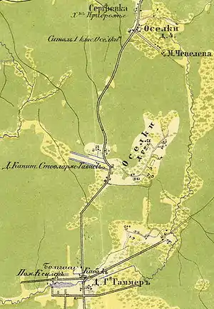 - имение близ селения Осельки площадью 100 десятин принадлежало действительному статскому советнику П. А. Плахову, приобретено в 1884 году.