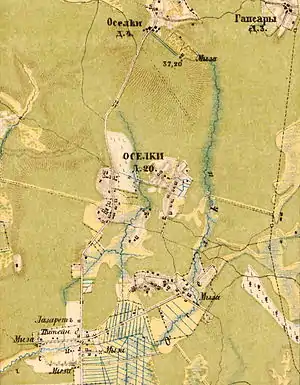 ОСЕЛЬКИ — деревня казённая, при колодцах; 21 двор, жителей 62 м. п., 61 ж. п. (1862 год)[11]