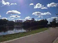 ![]() Вид с высоты 120 м на Афонинский пруд в Зюзино Парке | |