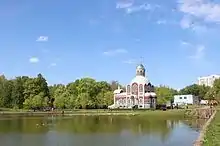 На северном берегу пруда поставлен временный Храм Святого Николая Чудотворца.[2] Впоследствии на его месте в рамках программы строительства православных храмов в городе Москве[3] будет воздвигнут Храм священномученика Вениамина Петроградского в Зюзине.[4][5]