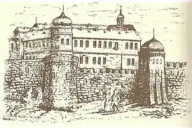 ![]() Ни́жний за́мок во Львове. Рисунок конца XIX века | |