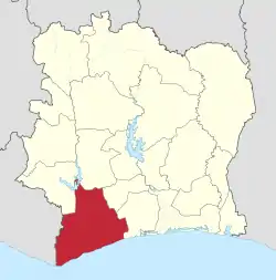 На северо-западе граничила с областью Муайен-Кавелли, на севере с областью Верхняя Сасандра, на северо-востоке с областью Фромаже, на востоке с областью Сюд-Бандама, на западе с Либерией. На юге омывается водами Гвинейского залива.