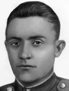 В бою под городом Изборск 30 июля 1944 года под сильным артиллерийским и миномётным огнём противника выкатил своё орудие на прямую наводку, уничтожил орудие противника, 2 пулемёта, рассеял и частично уничтожил 2 группы солдат противника численностью до 40 человек, мешавших продвижению стрелков РККА, выносил на руках и оказывал своим раненым товарищам первую помощь. Приказом по 67-й армии от 15 августа 1944 года он был награждён орденом Славы 2-й степени.