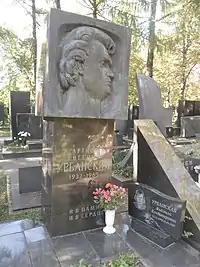 - надгробие С. А. Косберга (1965, Новодевичье кладбище, Москва)