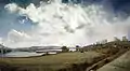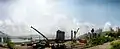 Процесс строительства моста с левого берега