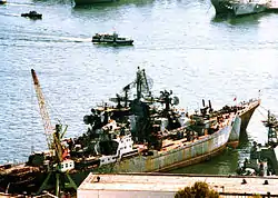 На заводе реактивная система залпового огня «Град-М» не устанавливалась, а монтировалась специальная площадка под неё. Пусковую установку с пороховым погребом установили во время докования корабля[4].