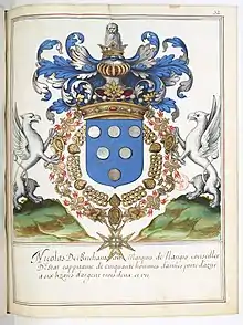 Маркиз де Нанжи, барон де Шарантон, де Мейян, и прочее. Капитан ордонансовой роты из пятидесяти тяжеловооруженных всадников, член Государственного и Тайного советов.