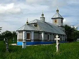 Церковь построена из обмазанного глиной дерева на каменном фундаменте. Имеет в плане прямоугольник. Церковь состоит из алтарной апсиды, нефа и притвора с надстроенной колокольней. Изнутри стены храма расписаны маслом[2].