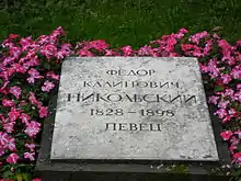 Скончался певец в Новгородской области. Был похоронен в Санкт-Петербурге на Новодевичьем кладбище[10]. В 1930-х годах захоронение было перенесено в Некрополь мастеров искусств Александро-Невской лавры.