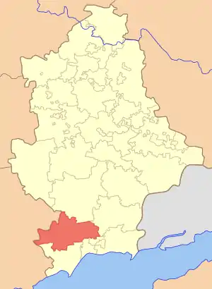 Нико́льский райо́н (укр. Никольський район, до 2016 г. Волода́рский[4]) — административно-территориальное образование на юго-западе Донецкой области Украины, население — 27 740 чел., площадь — 1221 км².