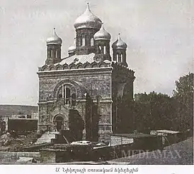 Первый проект соборного храма в Эривани, разработанный гражданским инженером М. Буйновым, представлен в 1891 году. Этот проект был одобрен 5 июля 1894 года, но строительство храма затянулось. В 1901 году вёлся сбор пожертвований для покрытия непредусмотренных сметой расходов. Строительство собора начинал В. Мирзоев, а заканчивал И. Киткин[1].