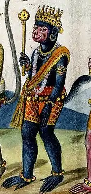В Рамаяне Нила описывается как сын Агни, бога огня и как Капишрештха (главная обезьяна) в репутации и доблести.[2] Важная часть эпоса описывает роль армии обезьян в спасении Ситы, жены Рамы, похищенной Раваной, царем ракшасов Ланки. Многие сюжеты, составляющие эпос, пересказываются в различных обработках.