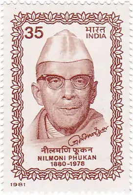 ![]() Нилмони Пхукан на почтовой марке Индии. 1981 г. | |