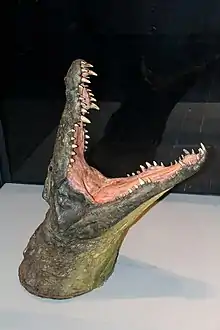 - Крупнейший известный череп нильского крокодила происходит из Эфиопии и имеет в длину 68,6 см, а его нижняя челюсть — 87 см. При жизни этот экземпляр был примерно 5,6 м в длину.[36]