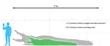 До чрезмерного охотничьего промысла в 20-м веке другие виды крокодилов также могли превышать 6 м в длину и тем самым быть сравнимыми по размерам с нильскими. Такие размеры для гавиалов и оринокских крокодилов кажутся относительно достоверными, они попадались в старых отчетах, прежде чем оба вида были почти полностью истреблены. По непроверенным данным, чёрные кайманы и острорылые крокодилы также могут в некоторых случаях вырастать до 6 метров[34]. Тем не менее, нильский крокодил является единственным современным видом крокодилов, кроме гребнистого, особи которого длиной более 4,5 метров встречаются достаточно часто[30][32].
