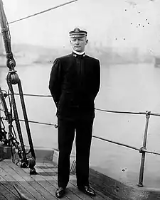 Начал службу на броненосце «Огайо» (англ. USS Ohio (BB-12)) в городе Сан-Франциско, на нём совершил плавание на Дальний Восток. В сентябре 1906 года переведён на крейсер «Балтимор» (англ. USS Baltimore (C-3)) и 31 января 1907 года, после двух лет в море, в то время обязательных по закону, получил звание энсин. Продолжая службу в Азии в 1907 году, ходил на кораблях «Панэй», «Декейтер» и «Денвер».